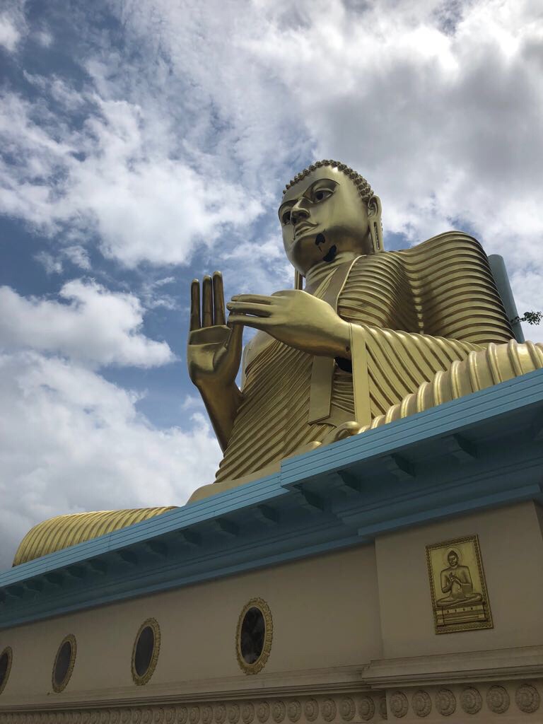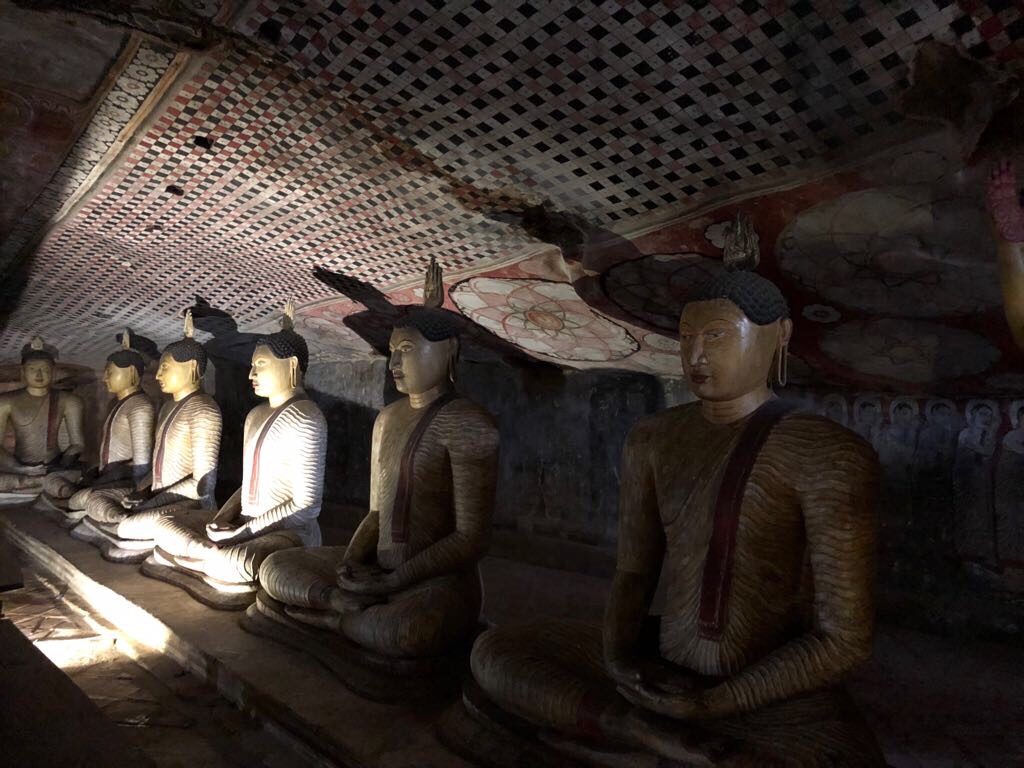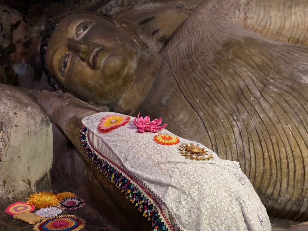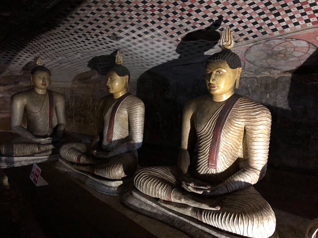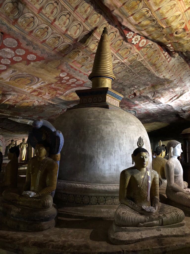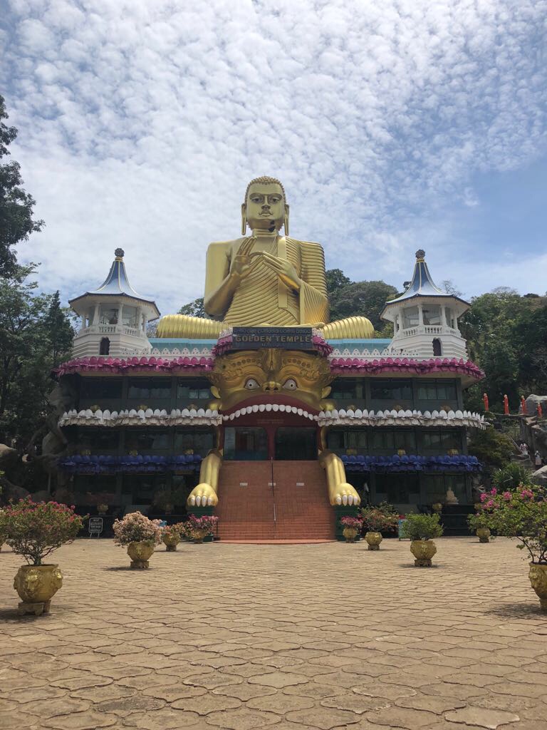 Dambulla : Rocher creusé de temples-cavernes ( avec des 20aînes de statues et des bouddha couché de 15 mètres) et du Temple d’Or (avec le Bouddha doré de 30 mètres offert par les japonais)